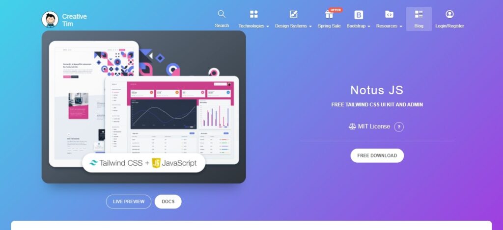 Notus JS is a free Tailwind CSS template that is both a tailwind and javascript-based UI kit. This kit comes with amazing cool features and tools for use in your next project. Also, the wide range of fully coded components can be your partner for creating amazing websites. Moreover, Notus JS offers ready-made example pages that can save your time.